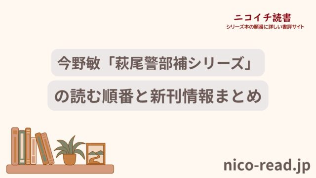 シリーズごと 今野敏「萩尾警部補」シリーズの読む順番と新刊情報まとめ 2025年9月28日 たkる https://nico-read.jp/wp-content/uploads/2021/04/nicoichiread-2400-toukamae.png ニコイチ読書