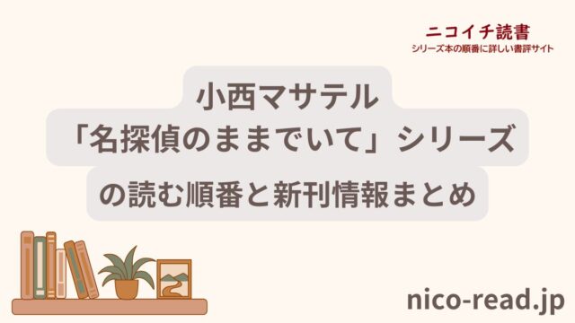 シリーズごと 小西マサテル「名探偵のままでいて」シリーズの続編読む順番と新刊情報まとめ 2025年9月28日 たkる https://nico-read.jp/wp-content/uploads/2021/04/nicoichiread-2400-toukamae.png ニコイチ読書