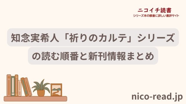 シリーズごと 知念実希人「祈りのカルテ」シリーズの読む順番と新刊情報まとめ 2024年11月23日 たkる https://nico-read.jp/wp-content/uploads/2021/04/nicoichiread-2400-toukamae.png ニコイチ読書