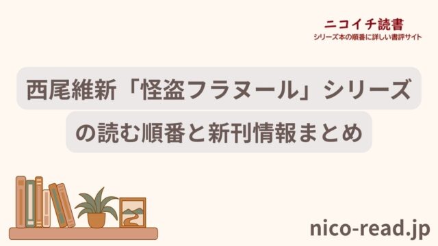 シリーズごと 西尾維新「怪盗フラヌール」シリーズの読む順番と新刊情報まとめ 2024年9月19日 たkる https://nico-read.jp/wp-content/uploads/2021/04/nicoichiread-2400-toukamae.png ニコイチ読書