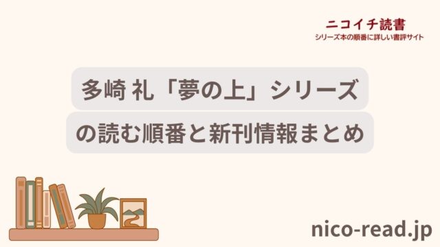シリーズごと 多崎 礼「夢の上」シリーズの読む順番と新刊情報まとめ 2024年8月25日 たkる https://nico-read.jp/wp-content/uploads/2021/04/nicoichiread-2400-toukamae.png ニコイチ読書