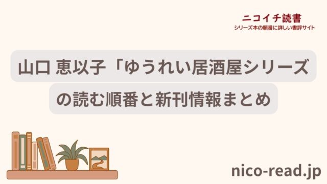 シリーズごと 山口 恵以子「ゆうれい居酒屋シリーズ」の読む順番と新刊情報まとめ 2024年5月23日 たkる https://nico-read.jp/wp-content/uploads/2021/04/nicoichiread-2400-toukamae.png ニコイチ読書